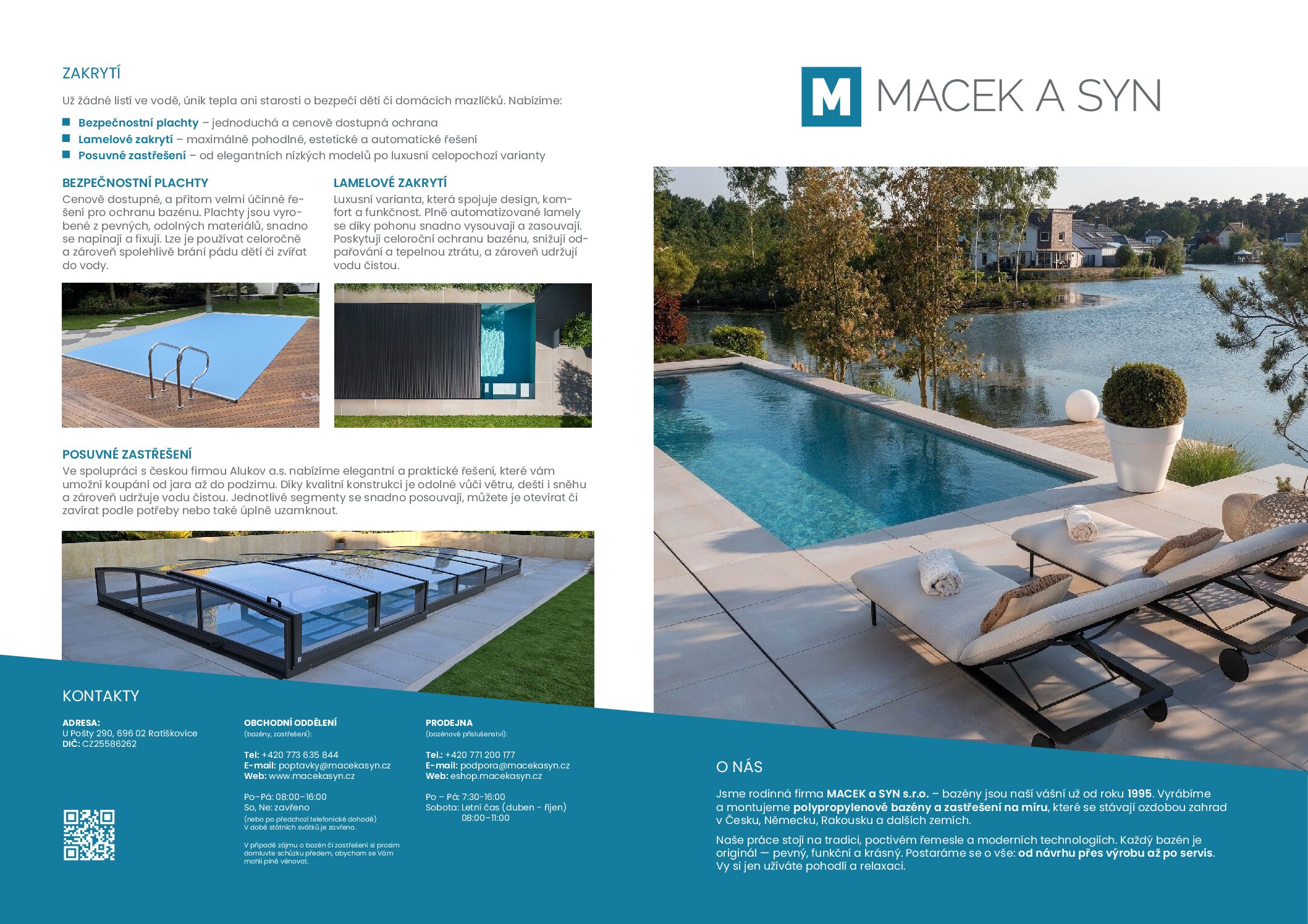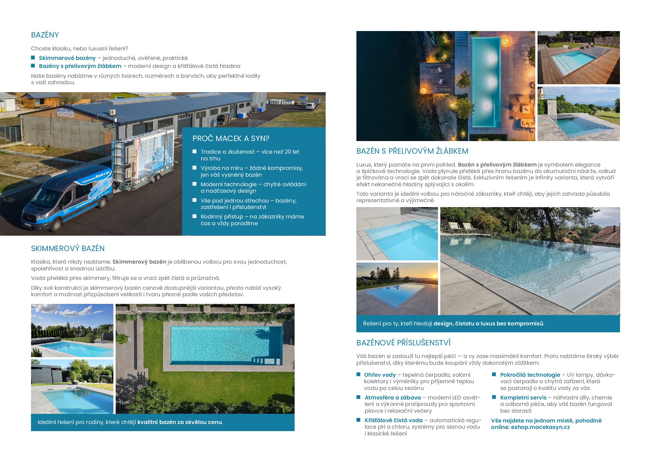 Firma MACEK A SYN s. r. o. vyrába na zákazku dva základné typy prevedenia bazénov – skimmerové a s prelivovým roštom.